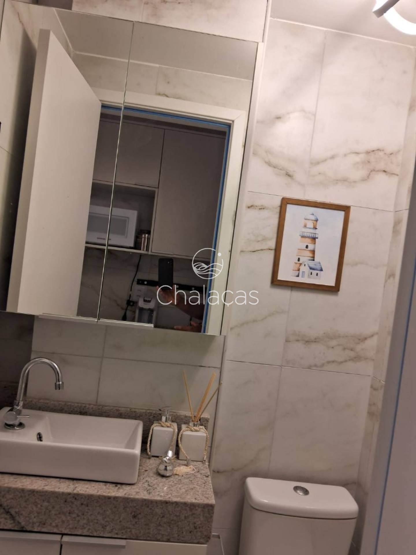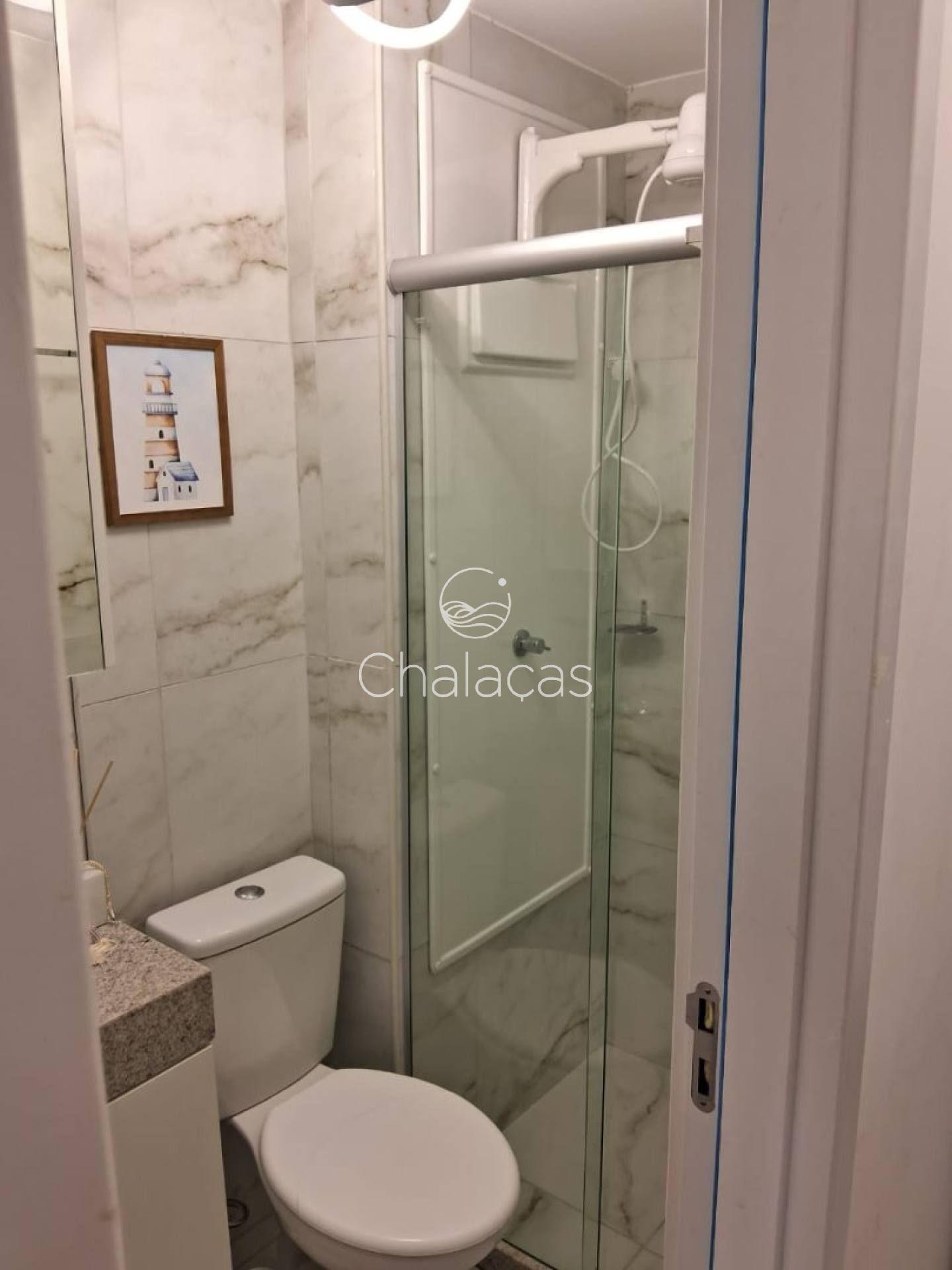 Acabamento de qualidade: Piso e revestimentos em porcelanato marmorizado, banheiro com box de vidro e bancadas em granito.