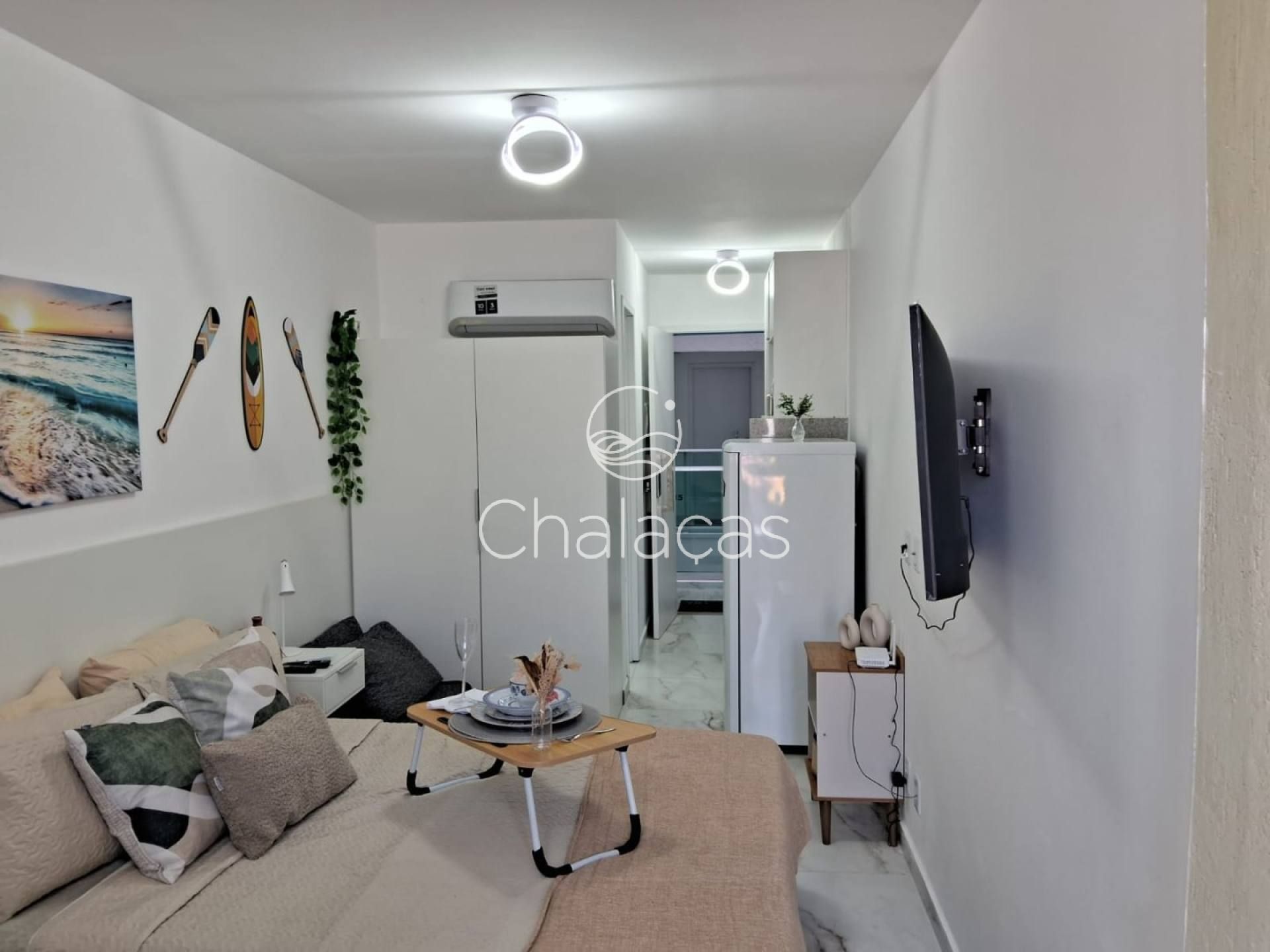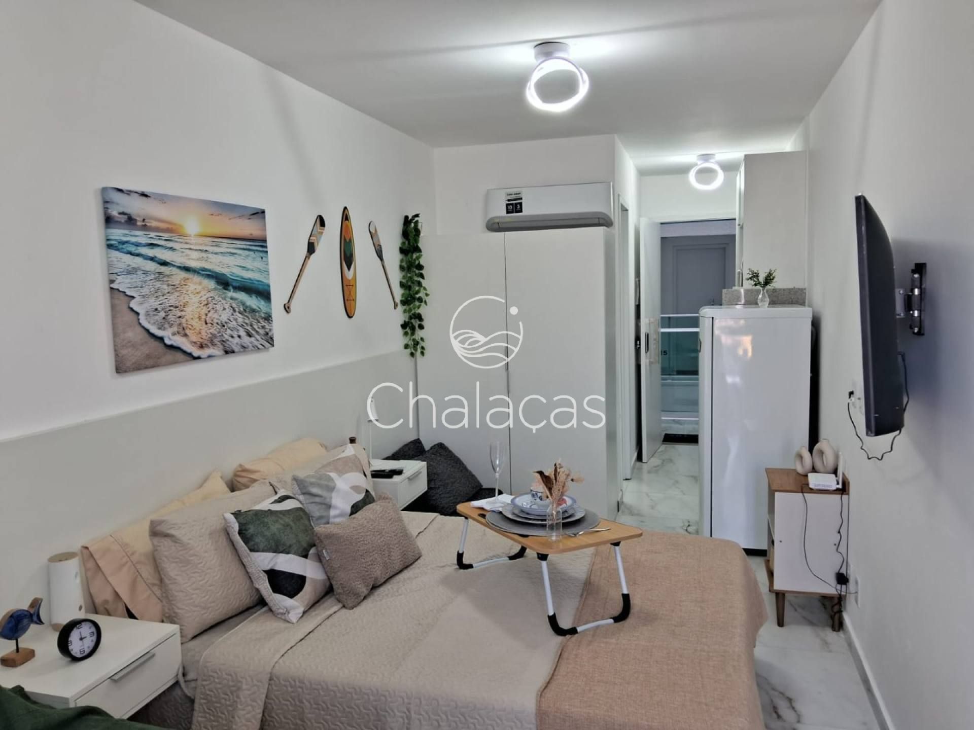 O studio está sendo comercializado completamente mobiliado e decorado, pronto para receber hóspedes no dia seguinte à compra: